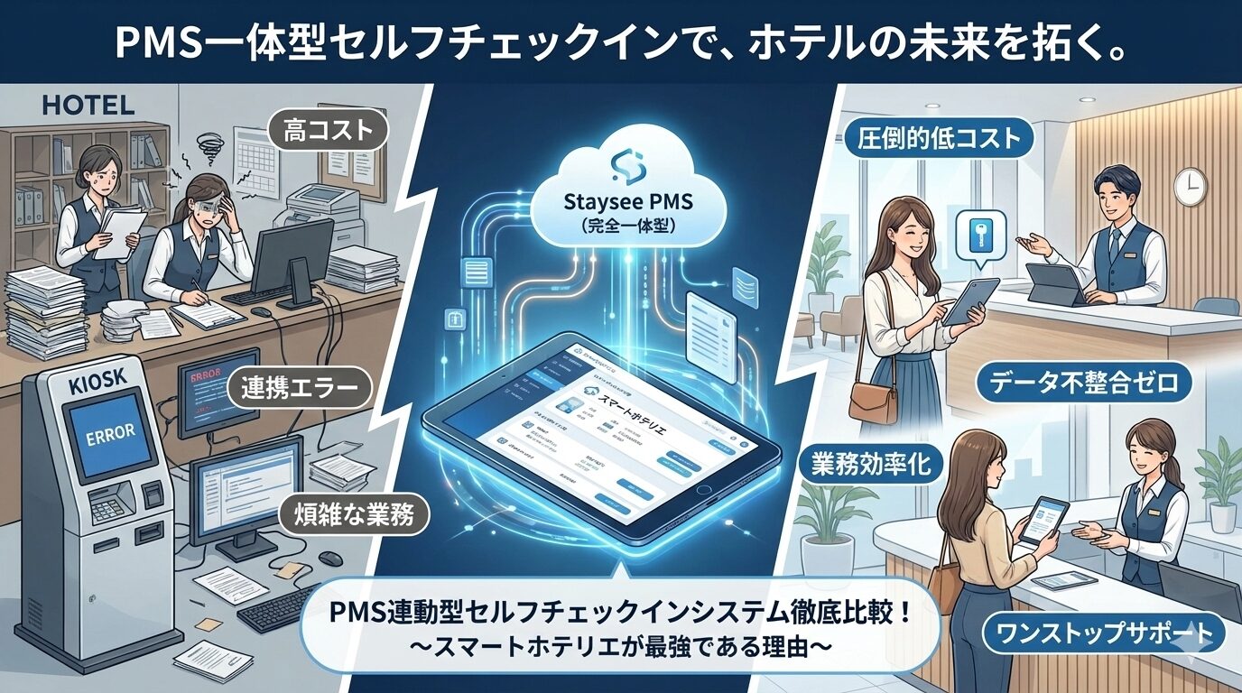 - 2025年12月16日ホテルシステム【2025年最新比較】PMS連動型セルフチェックインシステム徹底比較!