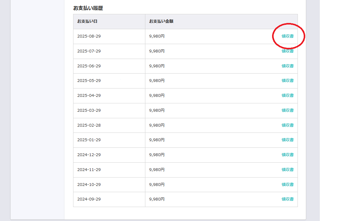領収書の発行につきましては、管理画面より操作いただけます。