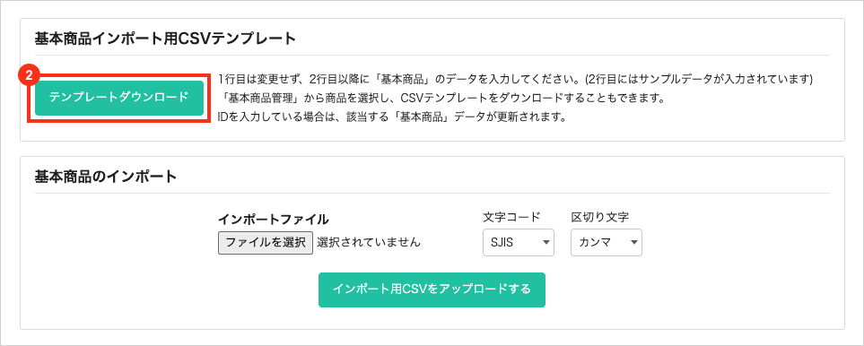 ステイシーでは、基本商品・その他商品・金種をCSVファイルにて一括で作成・編集するインポート・エクスポート機能をご利用いただけます。